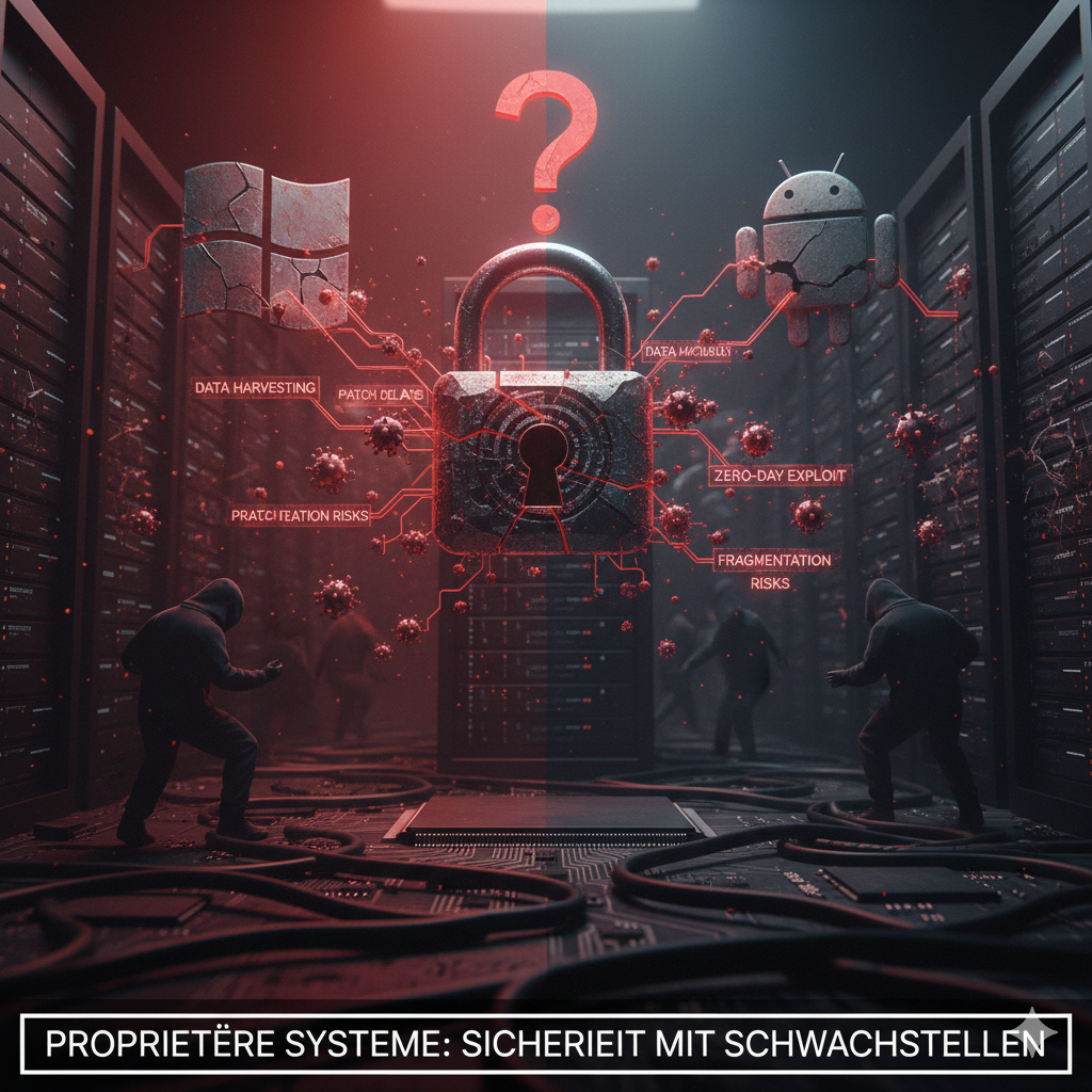 • Proprietäres Android: Während Android im Kern Open Source ist, wird es von Google stark modifiziert und mit proprietären Diensten (Google Mobile Services – GMS) angereichert. Dies führt zu einer immensen Datensammlung durch Google über Standort, Suchanfragen und App-Nutzung. Die Fragmentierung des Android-Ökosystems ist ein weiteres großes Problem: Viele Geräte erhalten Sicherheitsupdates nur sehr verzögert oder gar nicht mehr, wodurch sie dauerhaft anfällig für bekannte Schwachstellen sind. Jüngste Berichte zeigten, dass auch vermeintlich „sichere“ Apps sensible Daten ohne ausreichende Berechtigung abgreifen konnten.